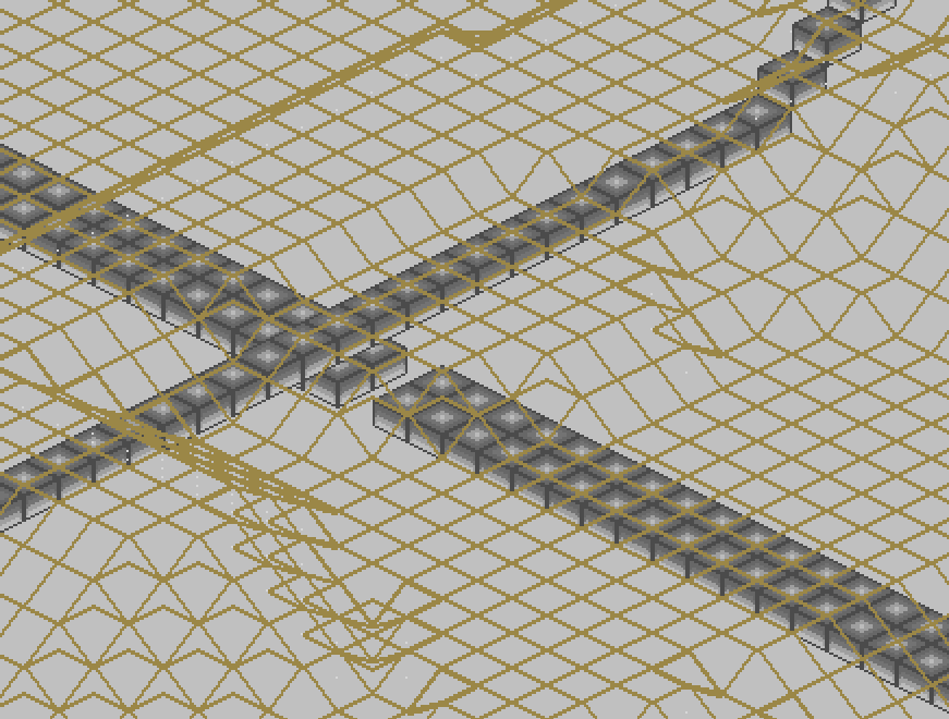 Here's a picture I created with a work in progress city editor tool. I was trying to make what looked like at grade highways, by keeping two adjoining roads from forming intersections.